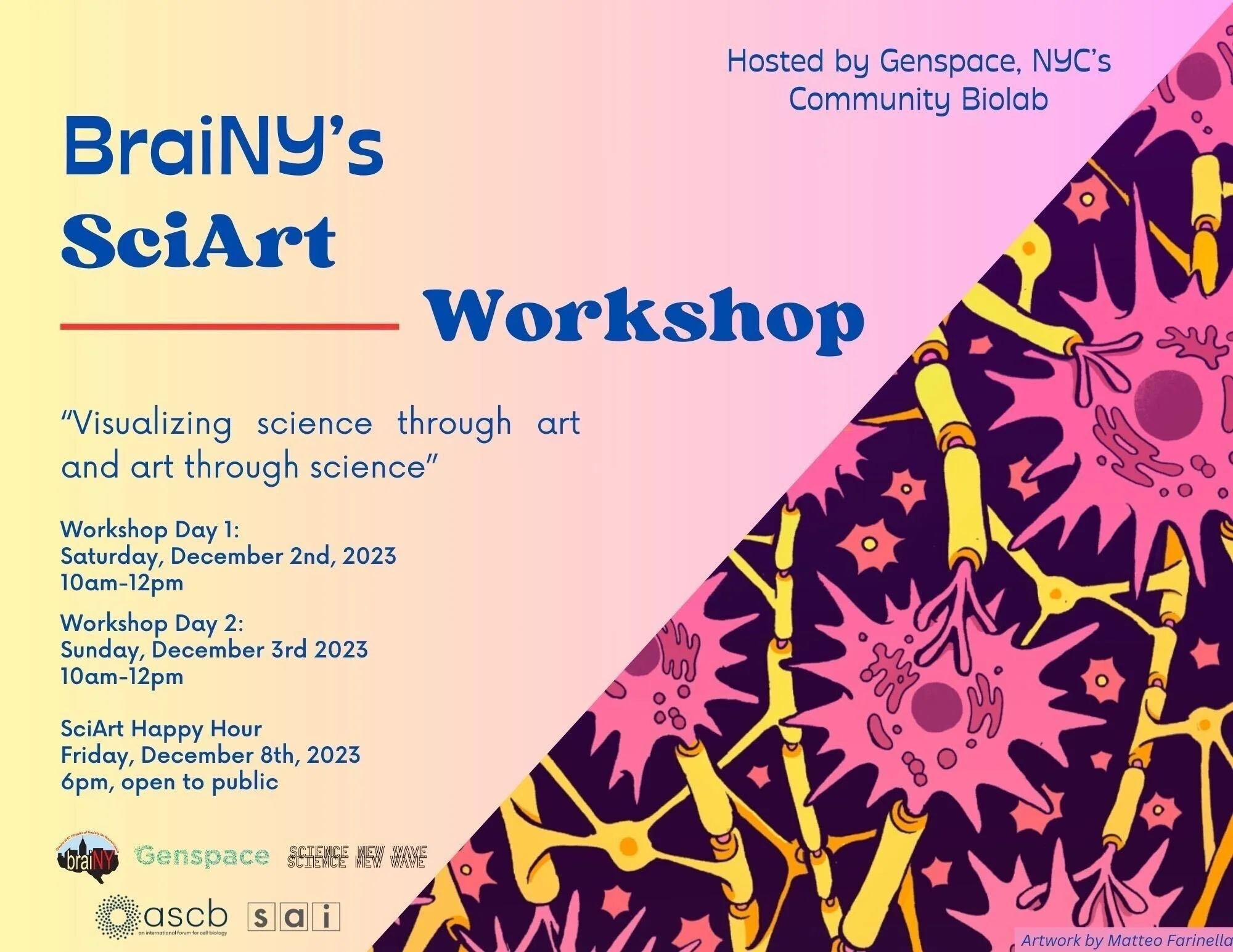 BraiNY's SciArt workshop was funded by a COMPASS Outreach Grant from the American Society for Cell Biology. The workshop was held in partnership with Science New Wave, Sai Collective, and Genspace.